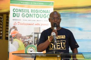 Dans son intervention, le Président du Conseil Régional, M. Kossonou Kouassi Ignace a remercié le directeur exécutif de l’ONG et son partenaire Américain, pour avoir répondu favorablement à la sollicitation de son institution, avant de rassurer les personnes en situation de handicap et des populations vulnérables de sa région des dispositions que prend la collectivité décentralisée pour l’amélioration de leurs conditions de vie et de travail. Aussi a-t-il félicité le 4ème Vice-président, M. Ouattara Mohamed, le coordinateur de l’opération au sein de l’institution de développement régional.