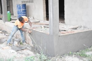 NIVEAU DES TRAVAUX : Pose de la toiture, plafonnage, électricité, enduit et pose des portes.